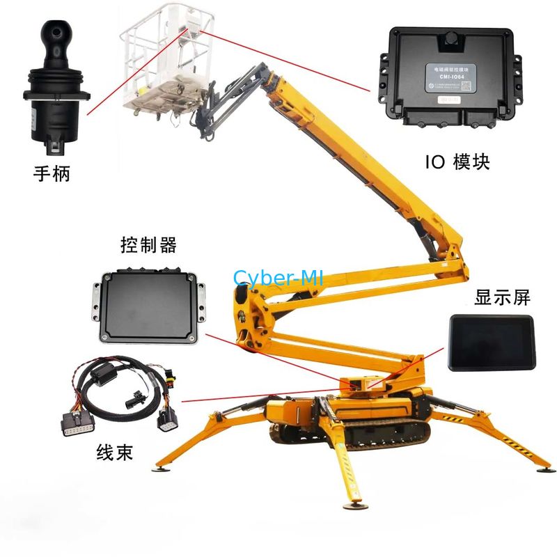 蜘蛛车电控系统包括以下几个产品:显示屏、控制器、IO模块、手柄和线束。
